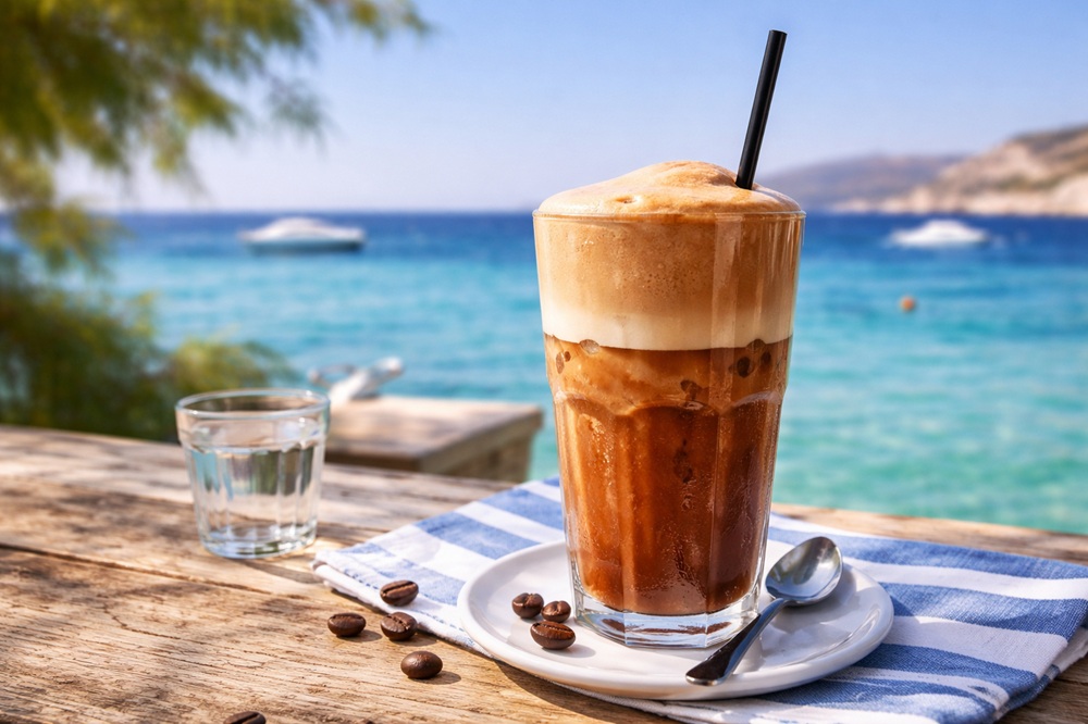 Omdat het een drankje is met veel schuim en ijsblokjes, is het zonde om het in een paar minuten op te drinken. Immers, als het geserveerd wordt, is er — buiten de eventuele melk — nog niet zo gek veel vloeistof aanwezig. De ijsklontjes moeten nog smelten en zich, door langzaam te roeren met je rietje of een roerstaafje, verbinden met het dikke koffieschuim. Je moet er, onder een parasol, in gedachten verzonken (of juist niet), een krant lezend (inmiddels is dat je smartphone) of gezellig babbelend, rustig van genieten. Ik ben nooit zo’n frisdrankdrinker geweest; ik vond en vind dit wél heel lekker en verfrissend. Zo werd het jarenlang mijn ideale terrasdrankje tijdens Griekse vakanties.